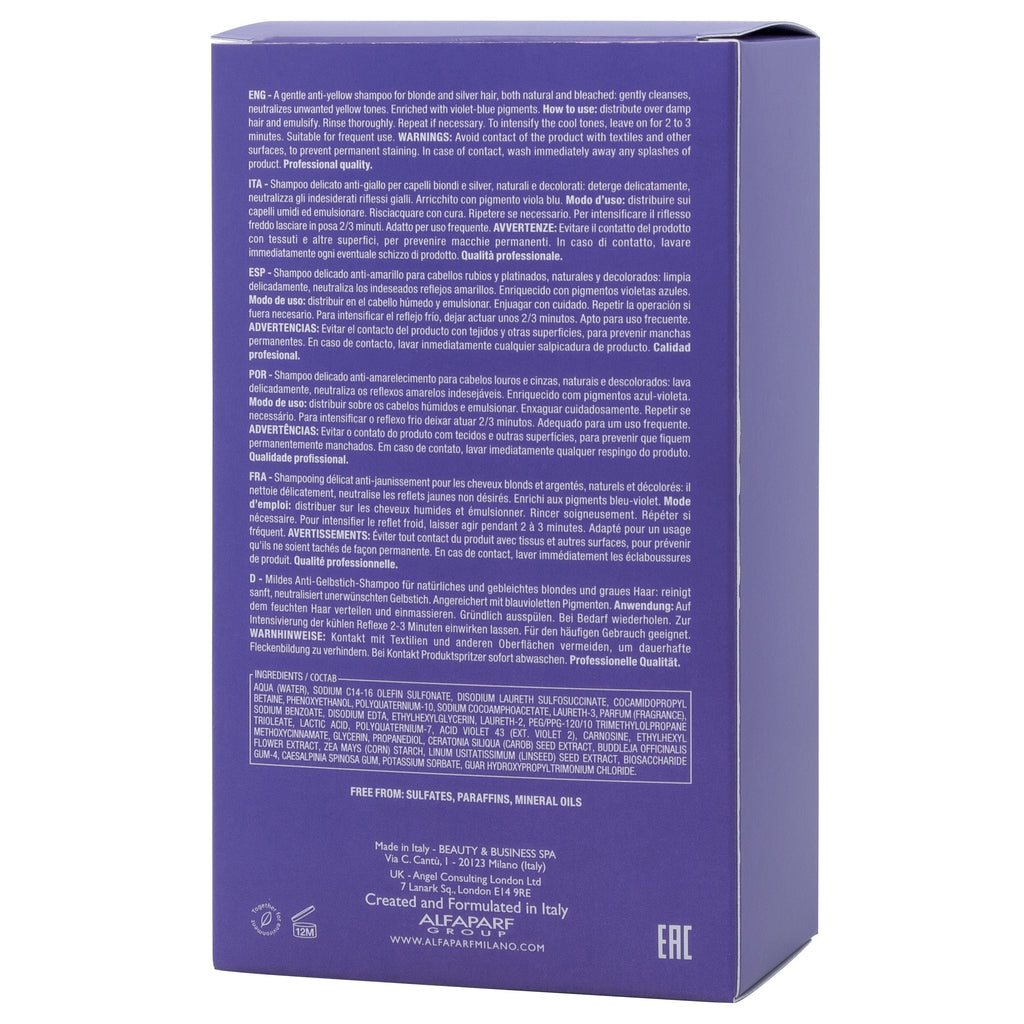 Aqua (Water), Sodium C14-16 Olefin Sulfonate, Disodium Laureth Sulfosuccinate, Cocamidopropyl Betaine, Phenoxyethanol, Polyquaternium-10, Sodium Cocoamphoacetate, Laureth-3, Parfum (Fragrance), Sodium Benzoate, Disodium Edta, Ethylhexylglycerin, Laureth-2, Peg/ppg-120/10 Trimethylolpropane Trioleate, Lactic Acid, Polyquaternium-7, Acid Violet 43 (Ext. Violet 2), Carnosine, Ethylhexyl Methoxycinnamate, Glycerin, Propanediol, Ceratonia Siliqua (Carob) Seed Extract, Buddleja Officinalis Flower Extract , Zea Mays (Corn) Starch, Linum Usitatissimum (Linseed) Seed Extract, Biosaccharide Gum-4, Caesalpinia Spinosa Gum, Potassium Sorbate, Guar Hydroxypropyltrimonium Chloride