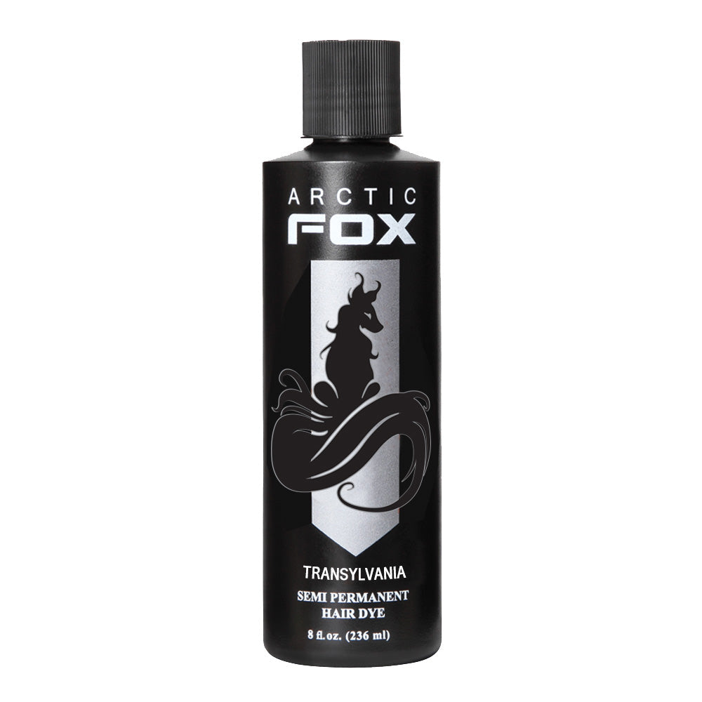 Raven wings, stormy night skies, and hair as black as your heart - Transylvania is the perfect fit for achieving all your darkest dreams. This primarily blue-based jet black will take well to a variety of base hair colours but will show as the darkest, truest black on hair lightened to around a level 7 or lighter.