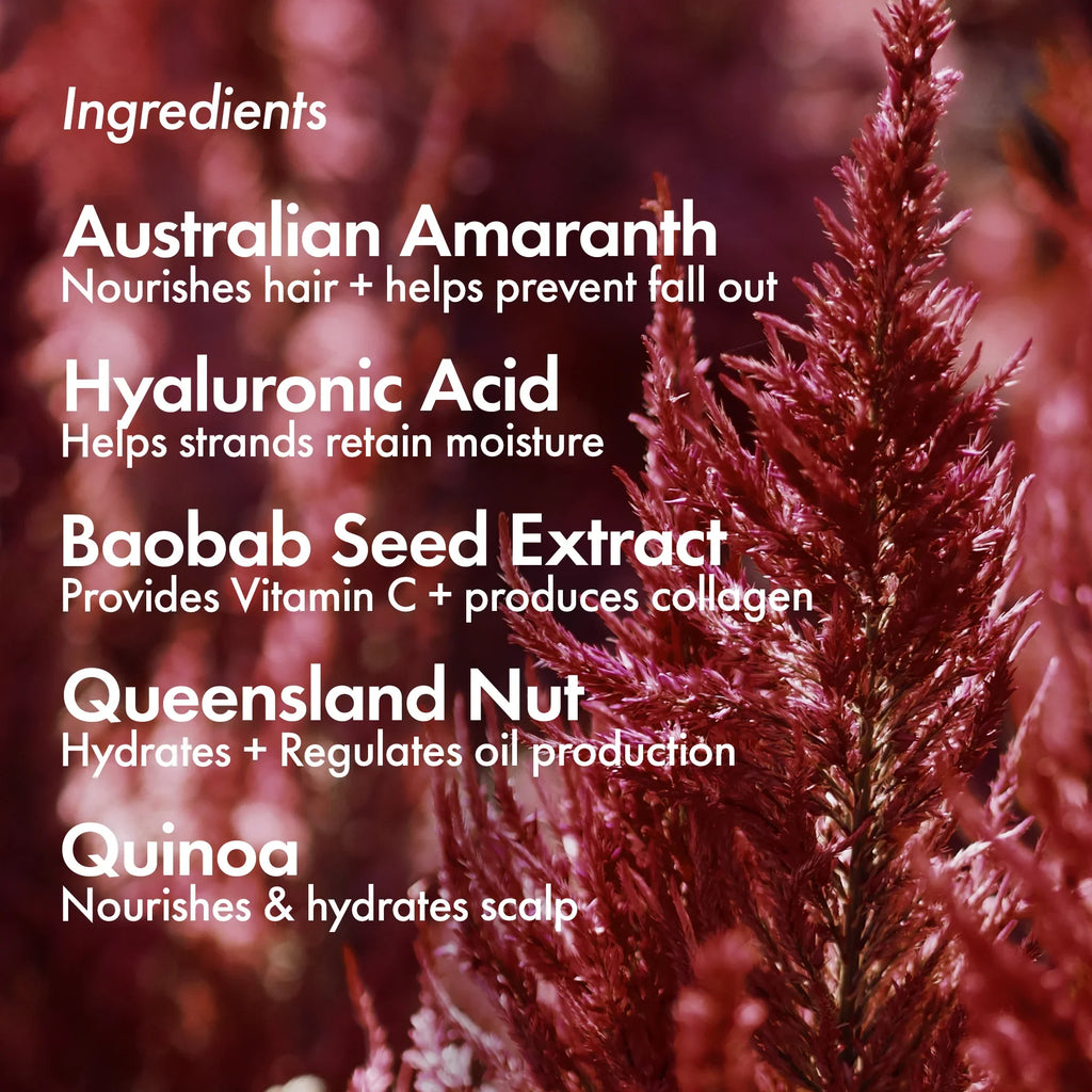 Aloe Barbadensis (Aloe Vera) Leaf Juice*, Behentrimonium Chloride, Cetearyl Alcohol, Glycerin, Coco-Caprylate, Propanediol, Caprylic/Capric Triglyceride, Argania Spinosa (Argan) Kernel Oil*, Simmondsia Chinensis (Jojoba) Seed Oil*, Hydrolyzed Jojoba Esters, Panthenol (Pro Vitamin B5), Niacinamine (Vitamin B3), Sodium Hyaluronate, Ceramide NG, Ricinus Communis (Castor) Oil, Vitis Vinifera (Grape) Seed Oil*, Macadamia Integrifolia (Macadamia) Seed Oil*, Rosmarinus Officinalis (Rosemary) Leaf Extract*, Hydrolyzed Quinoa, Hydrolyzed Adansonia Digitata (Baobab) Seed Extract, Biotin, Fragrance, Polyquaternium-7, Polyquaternium-10, Pentylene Glycol, Caprylyl Glycol, Ethylhexylglycerin, Citric Acid.