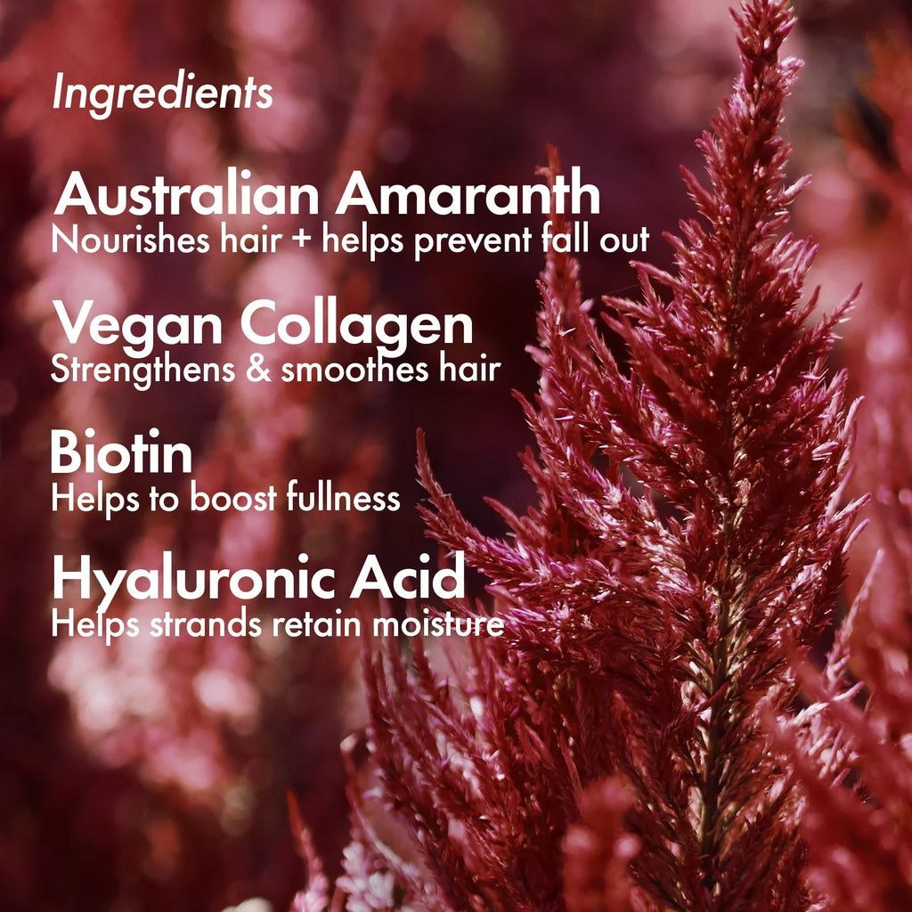 Formulated with a proprietary complex of powerful ingredients that work together to lift at the roots while expanding and plumping each strand, delivering instant thickness and volume. Known for its plumping and thickening powers, Hyaluronic Acid increases the thickness of each strand, while nutrient-rich vegan-friendly collagen, ginseng, and sea kelp strengthen and nourish strands, adding shine and gloss, leaving your mane visibly thicker, fuller and healthier.
