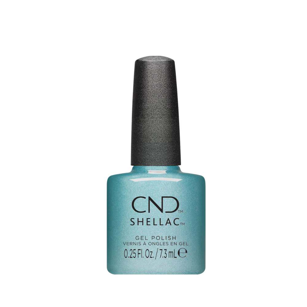 The CND Shellac Gel Polish Sleeping Mask is a aqua blue shimmer shade that is understated and eclectic.
