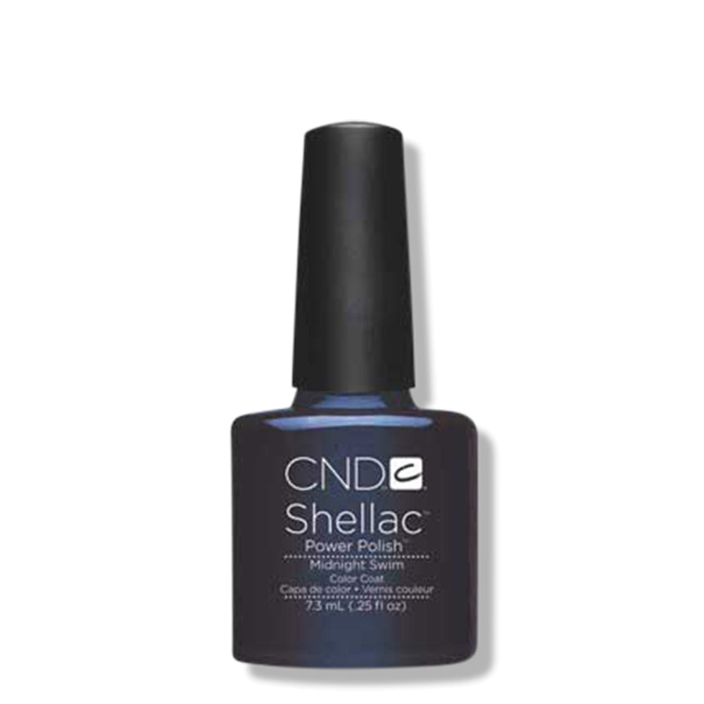 A stunning shimmery dark blue. CND Shellac - Midnight Swim is from the Winter Wonderland Collection featuring gel colours perfect for this fall season. The exceptional soak off gel polish formula goes on like polish and wears like gel. Designed specifically for use with the SHELLAC Brand 14+ Day Nail Colour System.