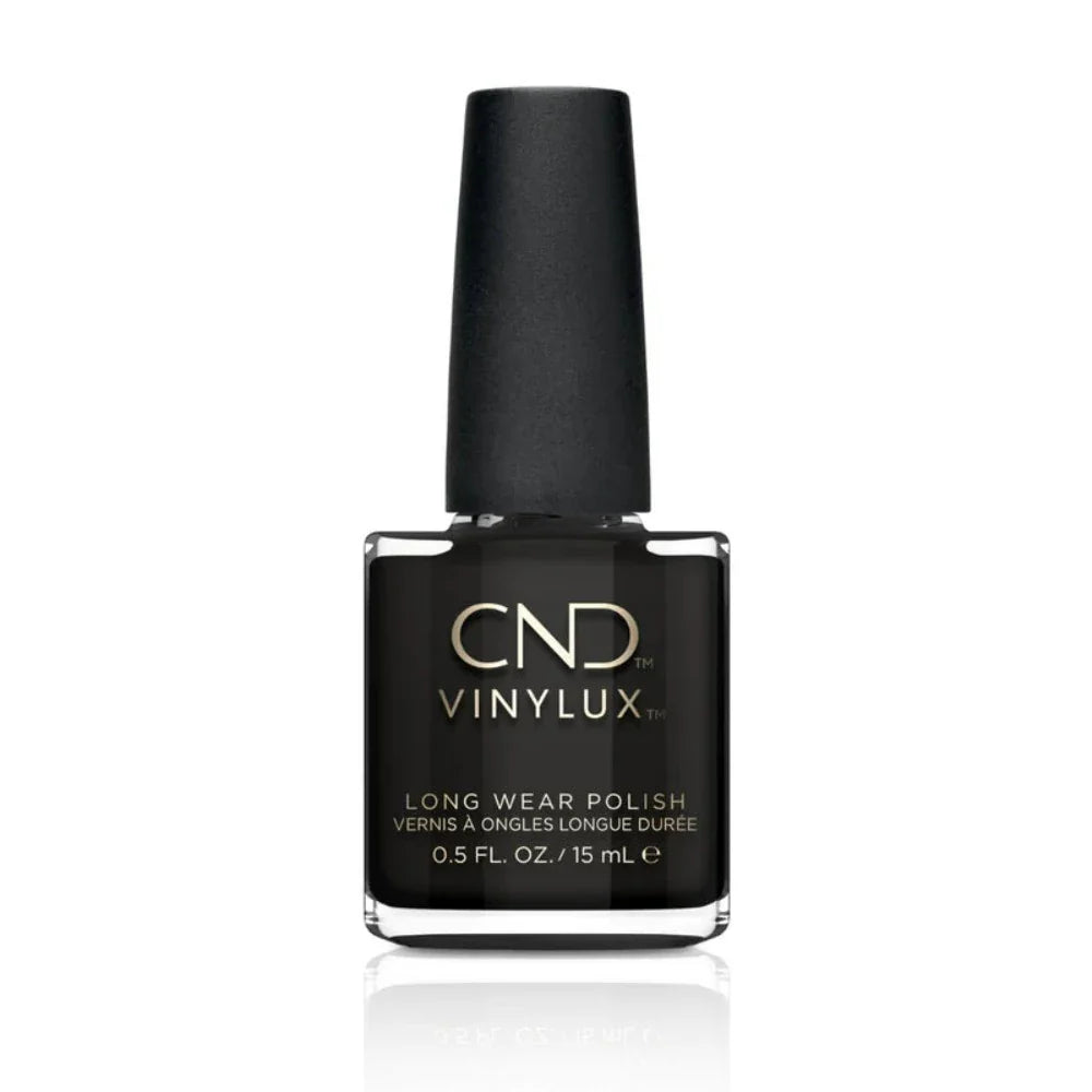 Discover CND's new collection Night Moves. CND Vinylux Long Wear Nail Polish Black Pool is a rich opaque pure black colour. Great look on active, short or tapered almond nails., durable Vinylux nail polish formula is infused with 3 nourishing complexes to promote nail strength and provide an intense, chip resistant colour coat that lasts for 7 days.