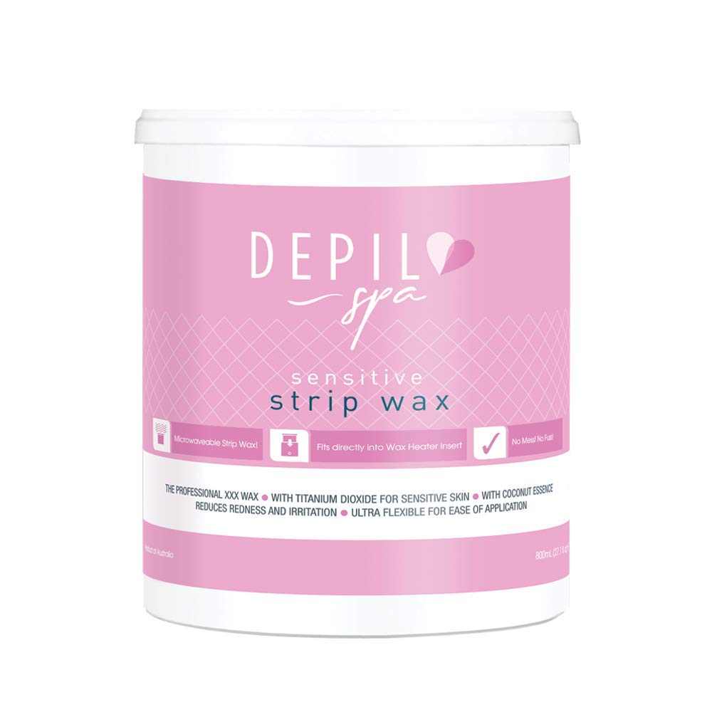 DepilSpa's Sensitive Microwaveable Strip Wax, developed for professionals, effectively minimizes redness and irritation on sensitive skin. Featuring coconut essence and Titanium Dioxide, this powerful and adaptable wax boasts unparalleled performance. Its one-of-a-kind creamy composition is mild on the skin, making it ideal for all body areas, even the more delicate and sensitive ones. With hypoallergenic properties, this wax is well-known for its exceptional results and will leave clients feeling comfortable and silky smooth, unlike more aggressive waxing methods.