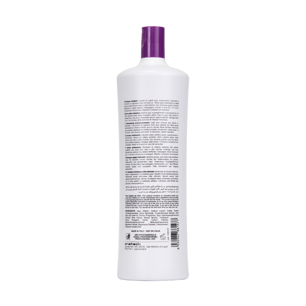 A gentle violet shampoo infused with violet pigments to effectively tone down unwanted yellow, brassy tones on bleached, highlighted, blonde or grey hair, helping you keep your hair color consistent and vibrant. Fanola No Yellow Shampoo neutralises yellow reflections driving from pigment residue after bleaching, lightening and the oxidizing action of the elements, giving the hair a cool, bright and even reflection.