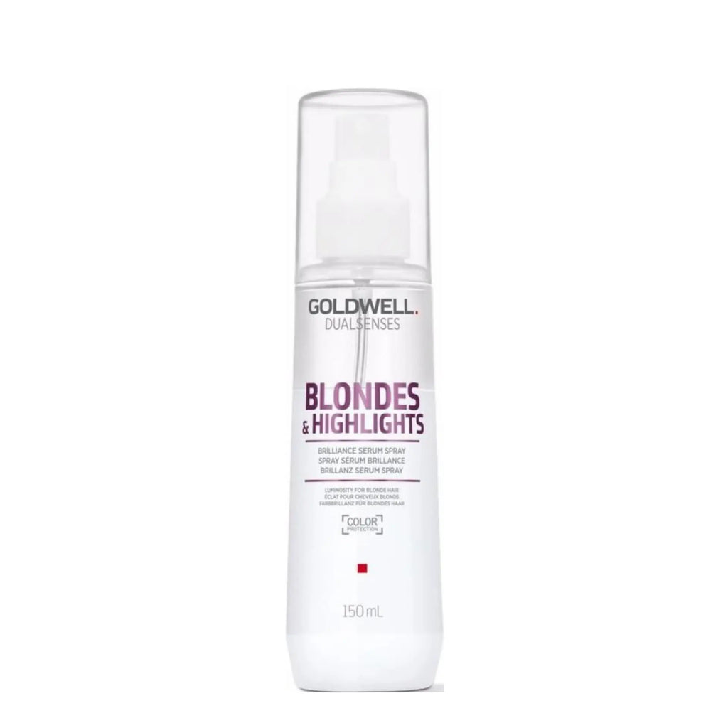 Maximise any blonde colouring and transform hair into a sensational sleek style with the Dual Senses Blondes & Highlights Brilliance Spray 150ml by Goldwell, beneficial for coloured hair due to its amazing capabilities of reducing colour fading; leaving hair healthy and vibrant!