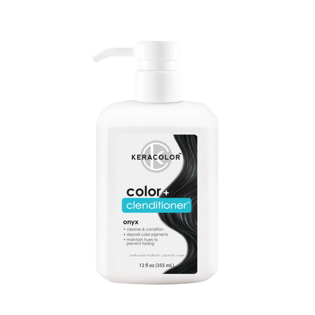 Keracolor Color + Clenditioner Colour Shampoo in Onyx cleanses, nourishes and imparts gorgeous colour onto your hair! This non-lathering conditioning cleanser instantly deposits direct dye colour pigments with every wash. Perfect to maintain vibrant coloured hair and prevent fading, or mix it up between salon visits. Colours becoming more vibrant and longer lasting with every wash. Pigment can last up to 10-15 washes, depending on porosity and pre-lightened level!