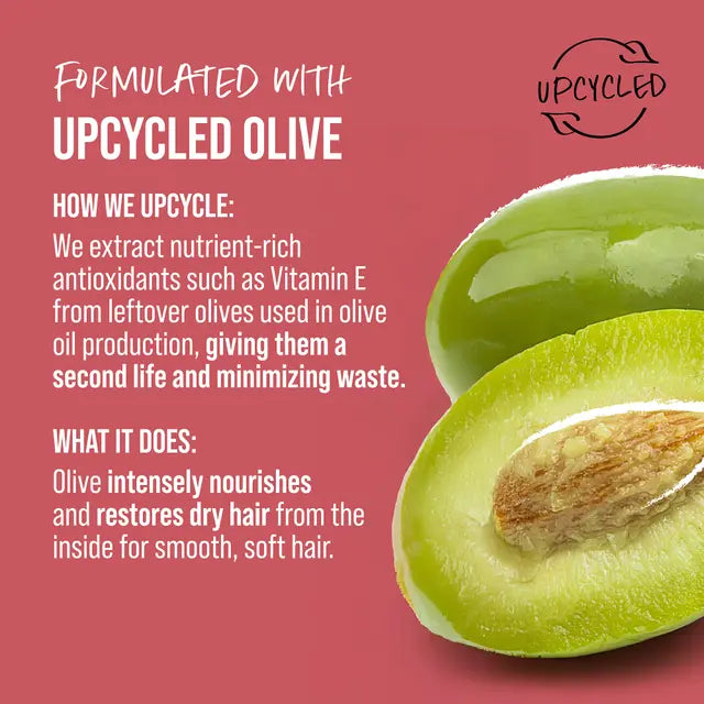 Nourishing Formula: Infused with upcycled olive extract and antioxidants to strengthen and protect hair.