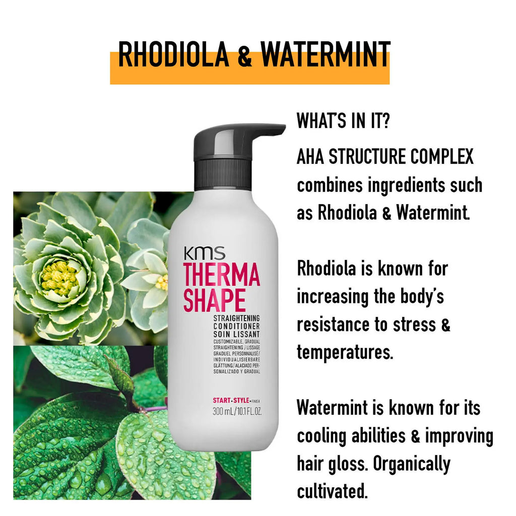 This deeply nourishing conditioner from KMS Thermashape gradually straightens hair when used with hot tools, while also enhancing manageability. It effectively smooths coarse and unruly hair, safeguarding against heat, humidity, and frizz.