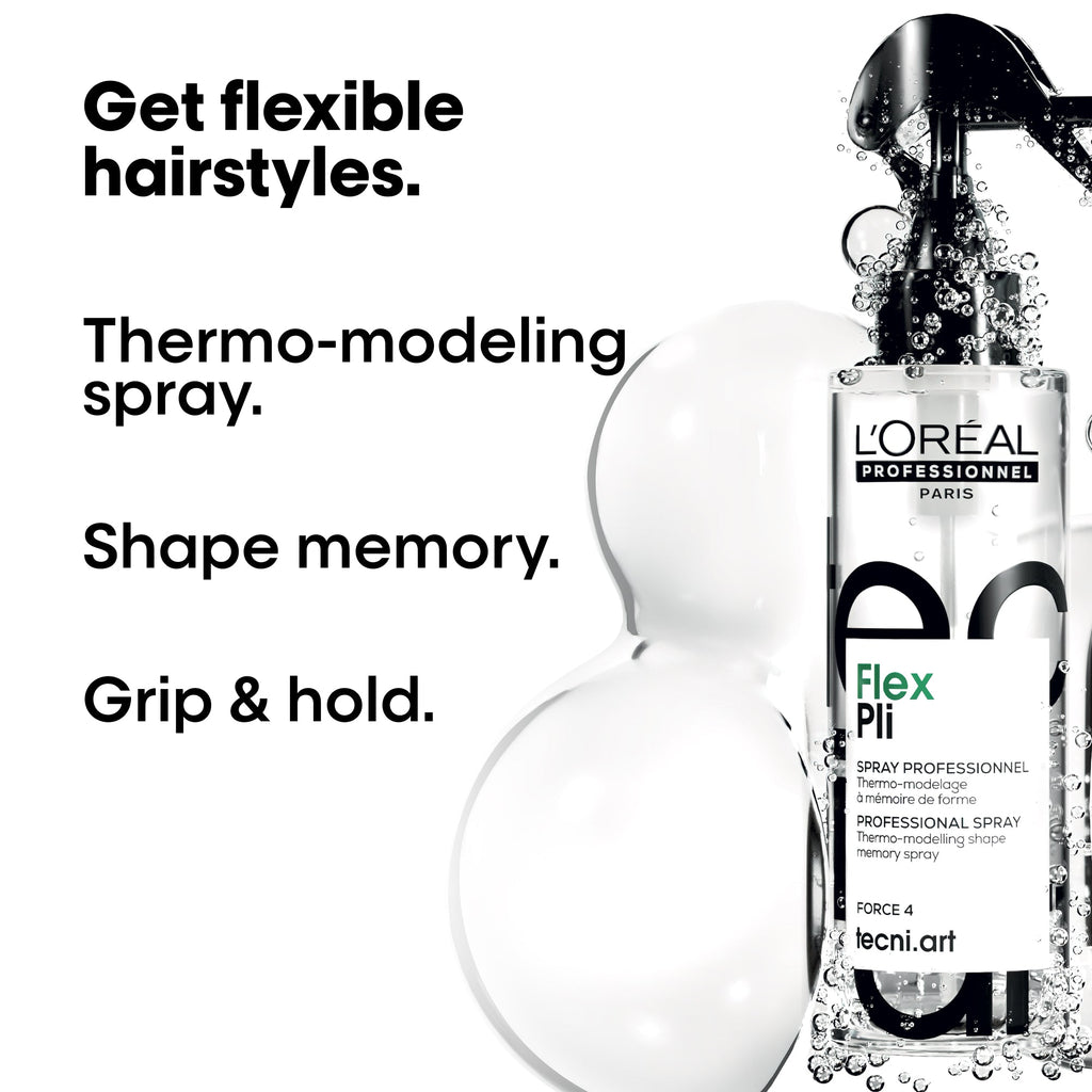 TECNI.ART Pli Shaper by L’Oréal Professionnel is a thermo-modelling shape memory spray. Hot tools’ best friend to create wave-set styles. Can also be used as a styling primer to add body and discipline, while keeping soft texture and natural feel. Perfect for thick hair.