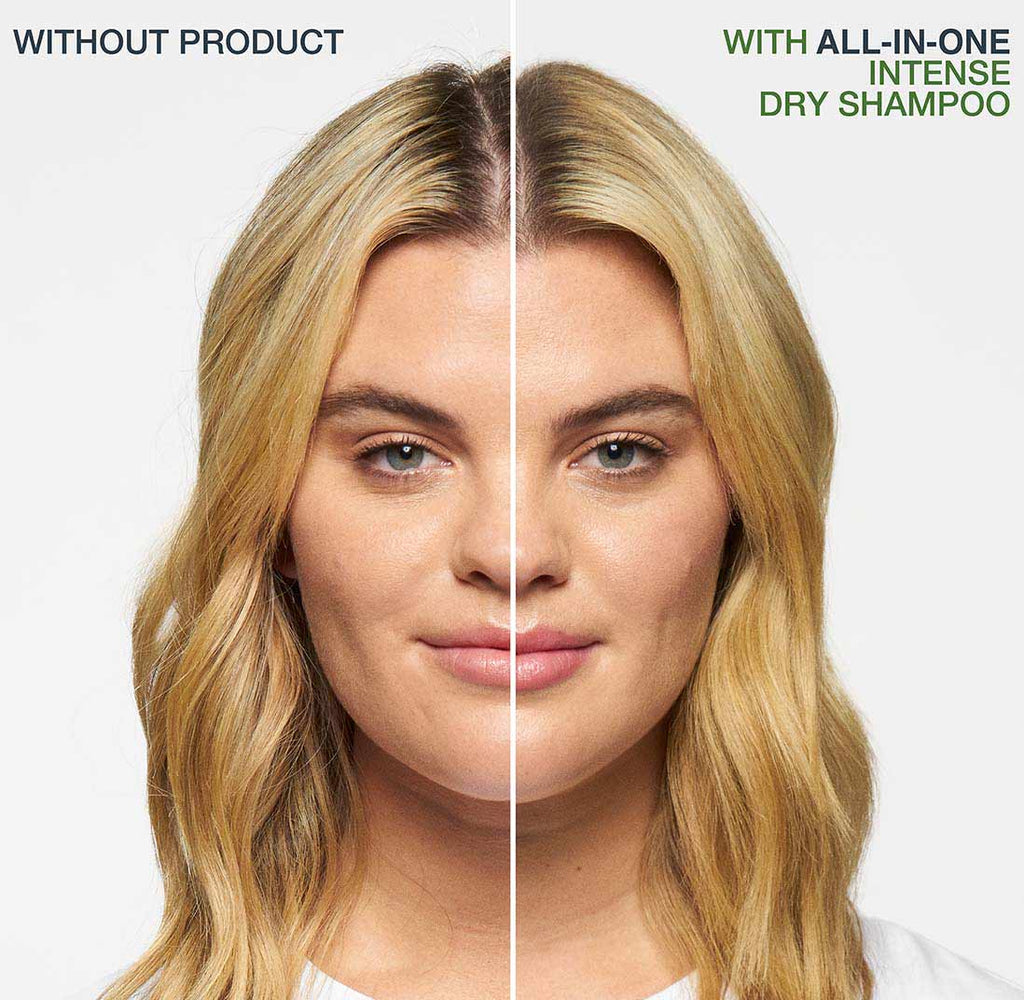 The All-In-One Intense Dry Shampoo absorbs oil to deeply cleanse, prime & refresh for healthy looking and clean feeling hair. The formula is suitable for all hair types and hair color, even the darkest brunettes.