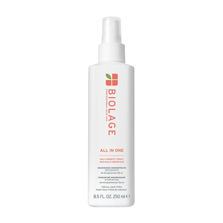 This highly versatile spray enhances shine, tames frizz, detangles, protects against heat, hydrates and helps to prevent split ends. Suitable for use on wet or dry hair, Biolage All In One Coconut Infusion Spray does it all.