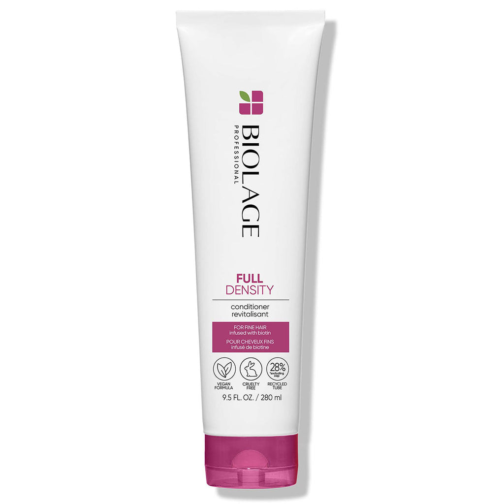 Matrix Biolage Full Density Conditioner for thin hair is infused with biotin and nourishes thinning hair while building hair resiliency from root to tip. This creamy formula leaves hair shiny-looking and soft-feeling. FULL DENSITY system of Shampoo and Conditioner nourishes & fortifies thinning hair leaving hair fuller-looking and healthier-feeling hair after just one use*. This system promotes a healthy scalp and strong lengths for thicker-feeling hair.