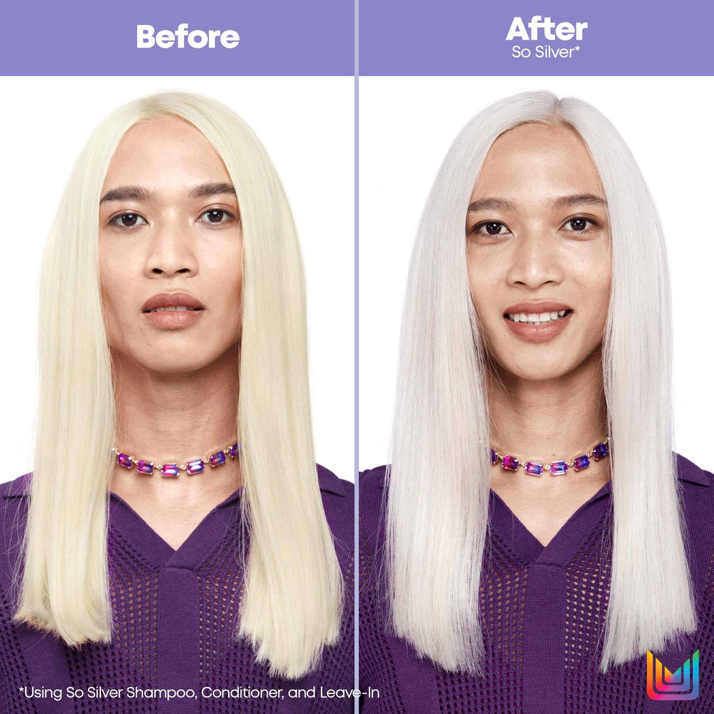 So Silver All-In-One Toning Leave-In Spray is a buildable color depositing formula to neutralize unwanted yellow undertones in between salon visits and prepare hair for styling.