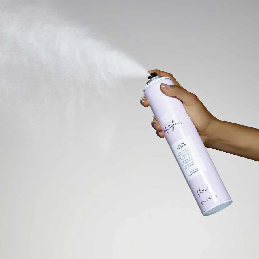 A strong hold hairspray formulated to give structure, hold and to maintain any style without compromising the natural movement of the hair. Leaves hair voluminous and shiny without unwanted residue and without weighing the hair down.