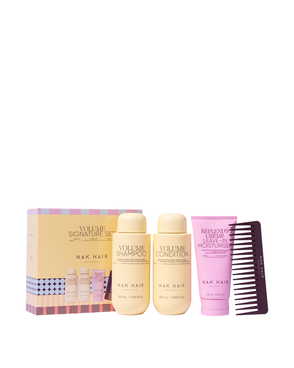 Start with the NAK Volume Shampoo (350ml) to gently cleanse while adding natural body and bounce. Follow with the NAK Volume Conditioner (350ml)—a feather-light formula that strengthens hair while enhancing fullness and movement.