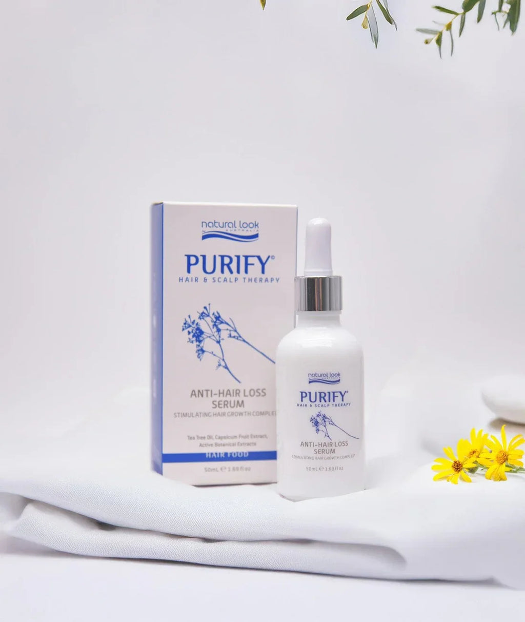 The Natural Look Purify Hair & Scalp Therapy Anti-Hair Loss Serum features a unique Hair Growth Complex that expertly combines tea tree oil, Arnica Montana, and Capsicum fruit extract to gently cleanse and nourish the hair follicles for optimal hair growth. The powerful blend of active ingredients stimulates the follicles, strengthens the hair, and helps prevent premature hair loss. Experience the benefits of this potent formula for yourself.