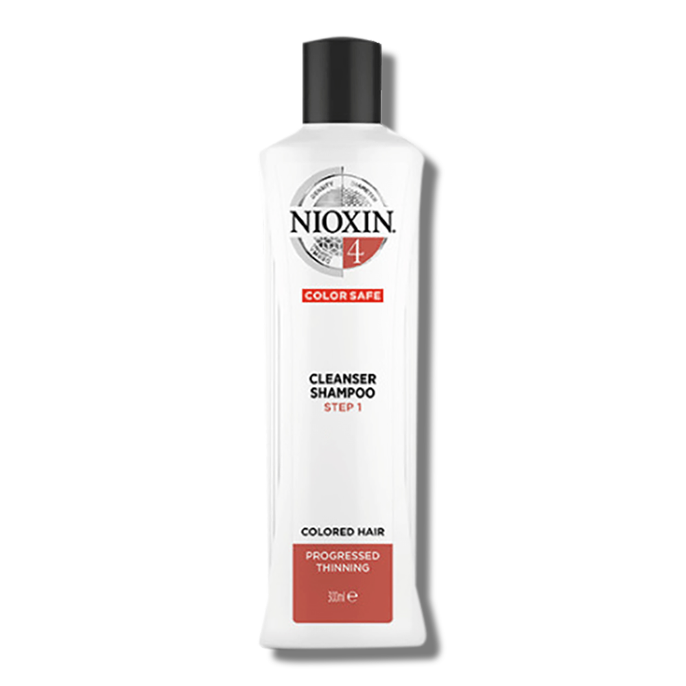 The Nioxin System 4 Cleanser Shampoo is a complete professional thickening treatment for coloured hair with progressed thinning that helps you achieve thicker, fuller-looking hair and restore moisture balance.