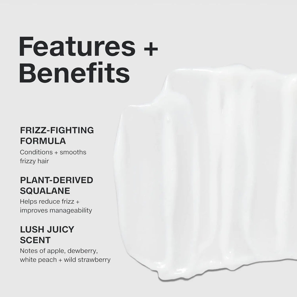 The lush, fruity fragrance features vibrant notes of apple, dewberry, white peach, and wild strawberry, delivering a refreshing finish to your wash routine. Ideal for prepping hair for a smooth blowout or simply keeping frizz in check between salon visits.