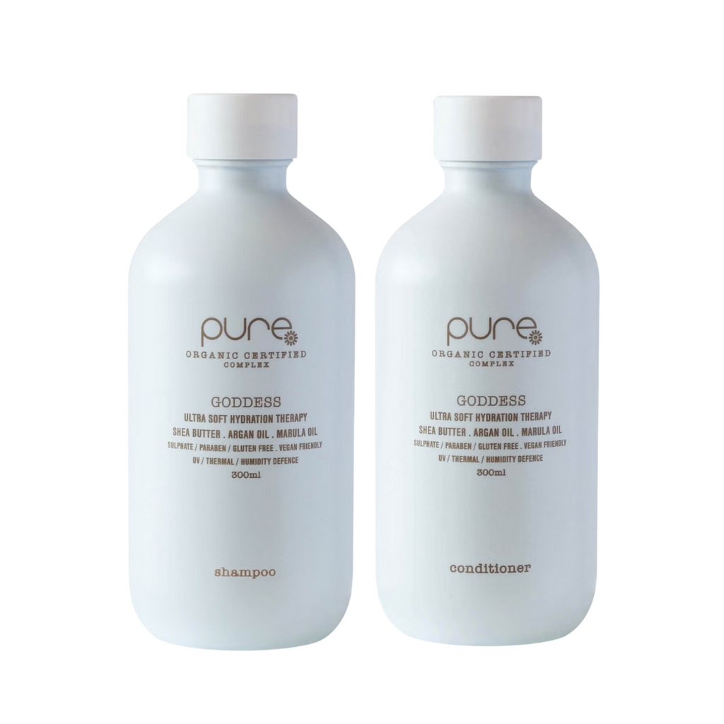 With exclusive “Pure complex” ™ (certified 100% organic extracts) Pure Goddess Duo hydrates, and restores moisture and manageability to dry, frizzy, unruly hair.