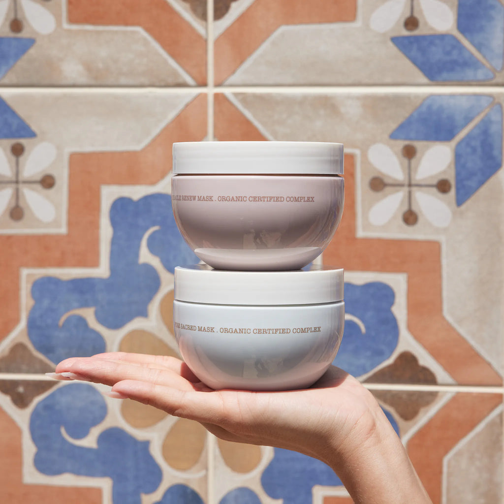 Pure Miracle Renew Mask with shea butter, almond oil & mongongo oil combined with pure complex (100% organic extracts) to restore ageing hair.
