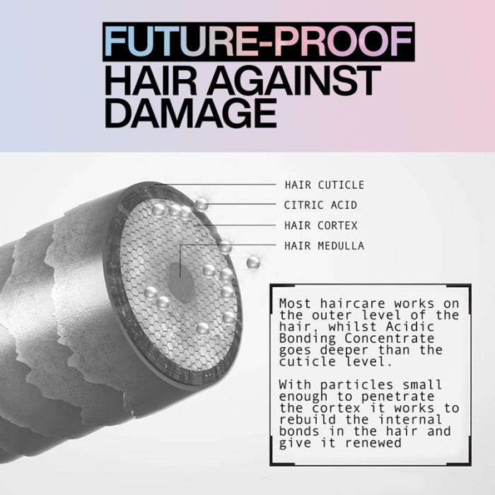 Redken Acidic Bonding Concentrate Shampoo works to cleanse, strengthen and intensely condition hair while reinforcing weakened bonds. Whilst the super hydrating and restoring, Acidic Bonding Concentrate Conditioner helps seal the cuticle and adds beautiful shine, so hair is left looking and feeling smoother and healthier, with natural movement.