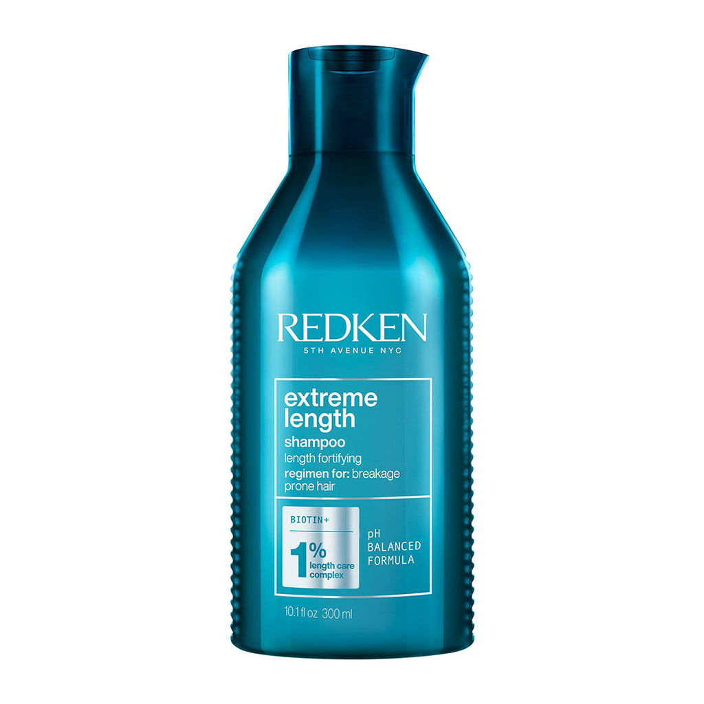 Redken Extreme Length Shampoo is formulated with Biotin, Castor Oil & Redken's Length Care Complex to helps strengthen damaged hair to grow longer. Extreme Length Shampoo helps hair growth by preventing breakage to achieve your desired length.