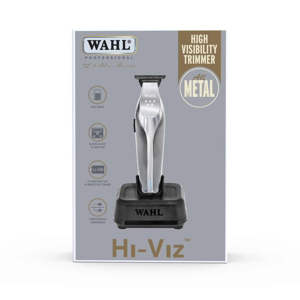 The Wahl Hi-Viz Trimmer is designed for those who live in the details. Built with a slim neck, where the body meets the blade, allows for more visibility and control with every cut. The re-designed wide T-blade is manufactured with diamond-like carbon (DLC) coatings that stay cool and remain sharp eight times longer than stainless steel blades (as shown in lab testing). With zero-gap capabilities, get skin close results and high-end results with every cut. The innovative Adaptive Speed Control automatically adjusts the motor to cut through all hair thicknesses and textures in a single hit. With over two years of intensive engineering, hand tested and assembled with care in the USA, the Hi-Viz is more than a tool – it’s an embodiment of your passion.